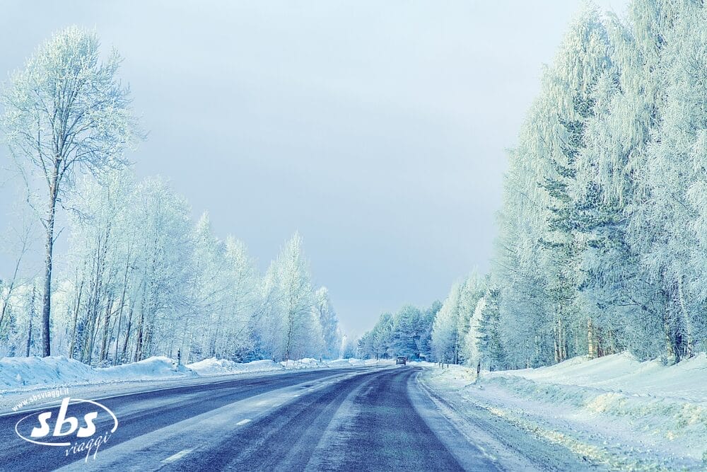 Partenza in bus verso Rovaniemi e visita del Villaggio di Babbo Natale con attraversamento del Circolo Polare Artico.